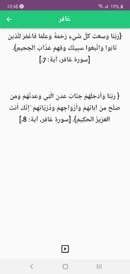 Ayat supplications in the Holy Qur’an is an application that contains all the supplications contained in the Holy Qur’an. These supplications, which the reader recites, are a direct supplication from the person to his innocent. It asks for sustenance or success, as well as guidance. It is supplications from every believer to his Lord in the Noble Qur’an. It is an easy and simple application, I hope to benefit from and success.