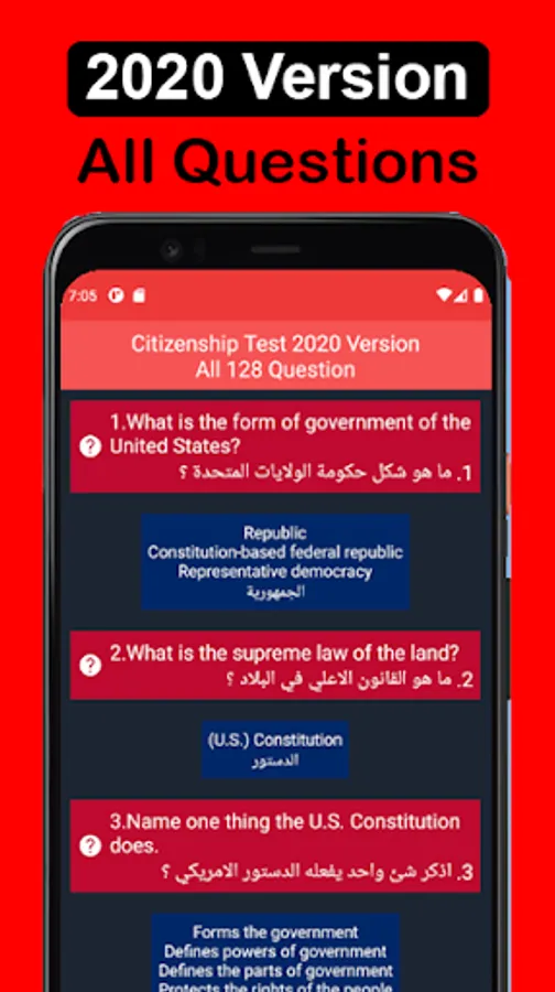 - The application contains all the questions with answers for the 2008 and 2020 versions