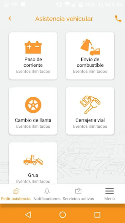 With this new application you can request your road assistance services that are available in your car policy such as: