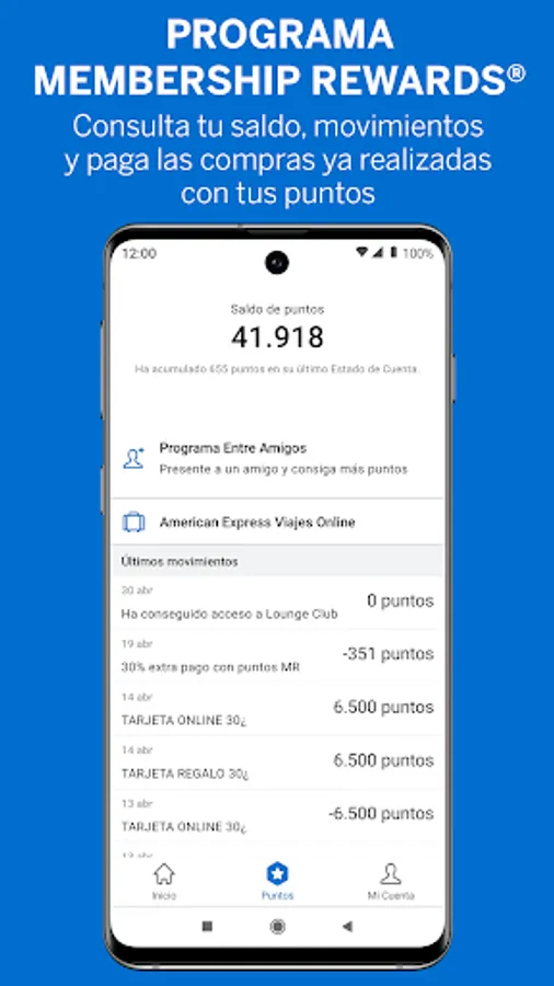 With the official American Express application you can temporarily turn off your Card, receive notifications, check your recent movements, pending charges, balance, the maximum amount of a purchase and accumulated points. And if you're enrolled in the Membership Rewards® program, pay for purchases you've already made with Membership Rewards points. Access quickly and securely with your fingerprint.