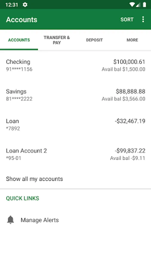 • Detailed transactions list — View the date, location, amount, and more for transactions on one page, just like you see in Online Banking.