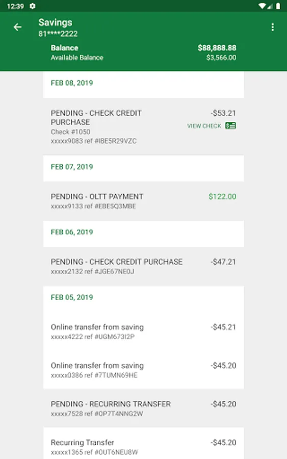 • Available balance and pending deposits — learn more about how your available balance is calculated and what’s still pending. Note, some transaction activities may not be immediately recorded to your account and may not yet be reflected in the available balance.