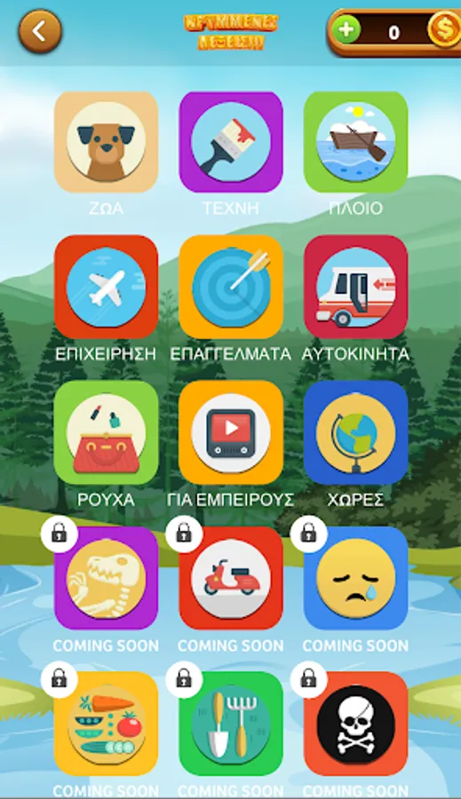 Βρείτε τις κρυμμένες λέξεις μέσα στο κρυπτόλεξο χωρισμένο σε κατηγορίες όπως Ζώα, Ενδυμασία, Αυτοκίνητα και άλλες πολλές κατηγορίες.