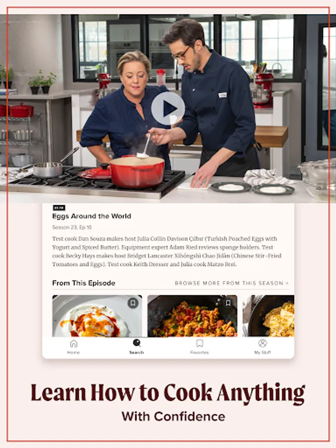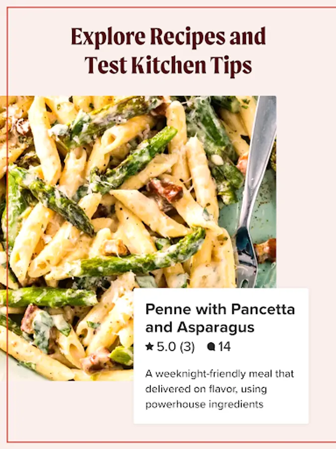 The America's Test Kitchen app delivers the best-tasting recipes, cooking videos, kitchen reviews, and 30 years of test kitchen discoveries! Recipes are all in one place - get every failproof recipe from America’s Test Kitchen, Cook’s Illustrated, and Cook’s Country.