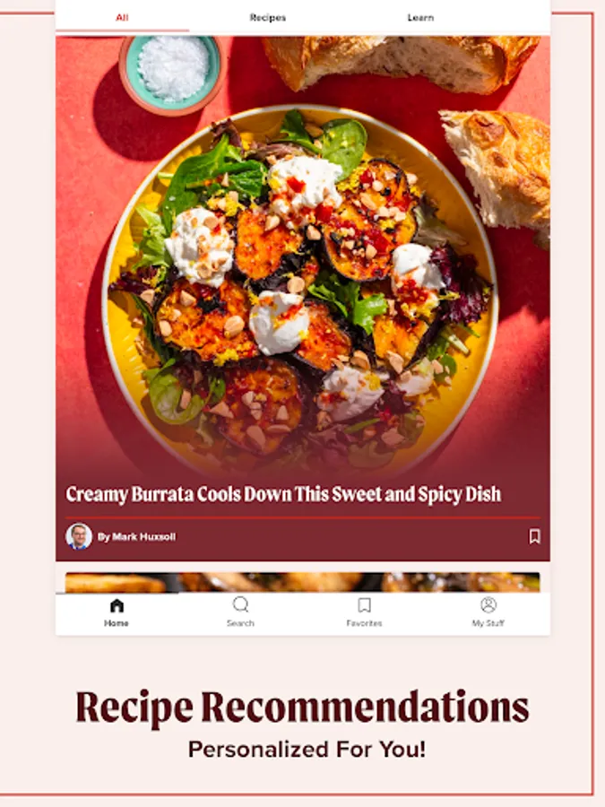 Cooking recipes has never been easier. Learn new techniques, tips, and tricks in more than 14,000 recipes. Recipes, daily insider articles, videos, full cooking show episodes, unbiased equipment, ingredient and kitchen reviews, and exclusive tools all at your fingertips! Recipe comments are available for users to add ratings and create personal notes for recipes.