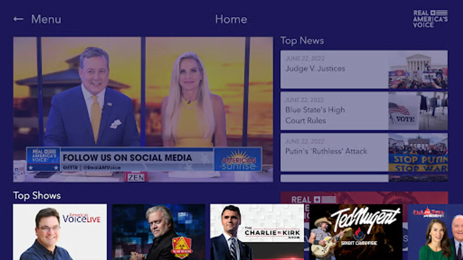 Real America’s Voice News is an American news and entertainment network, featuring breaking news and political entertainment. Real America’s Voice News, is a unique blend of quality programming aimed at sparking conversation, educating viewers and serving as a much-needed check and balance in the political media sphere. One voice rises above the din of often-biased media coverage.