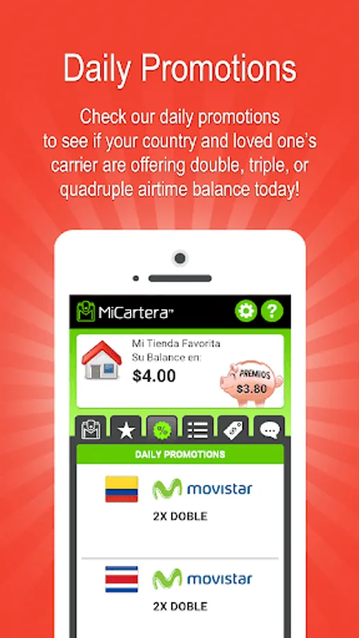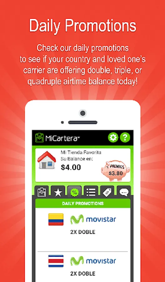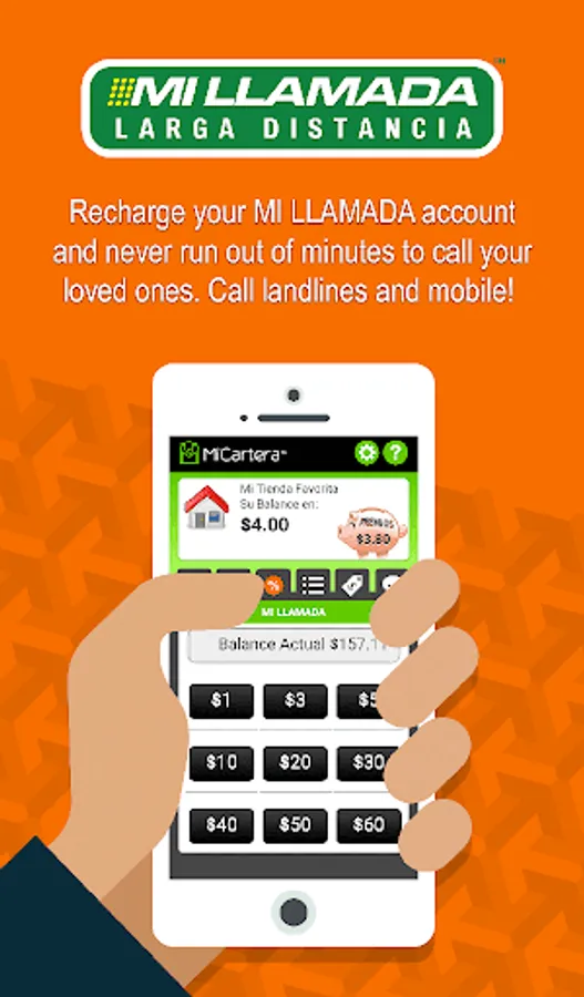 MiCartera™ App: Recharge pre-paid cellular phones worldwide, certain pre-paid cellular phones in the USA, and your MI LLAMADA® account. To add funds please visit a MI LLAMADA® agent near you.