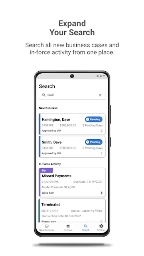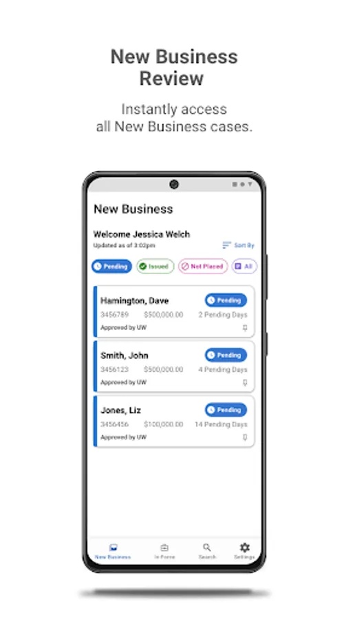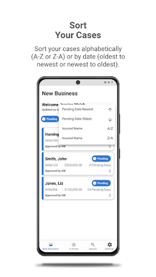 The Ameritas Agent App now offers new and improved access to all your cases throughout the application process. Instantly access new business cases; search, sort and filter all your cases quickly and easily; get alerts on any in-force activity changes; and manage all case requirements with just a few clicks.