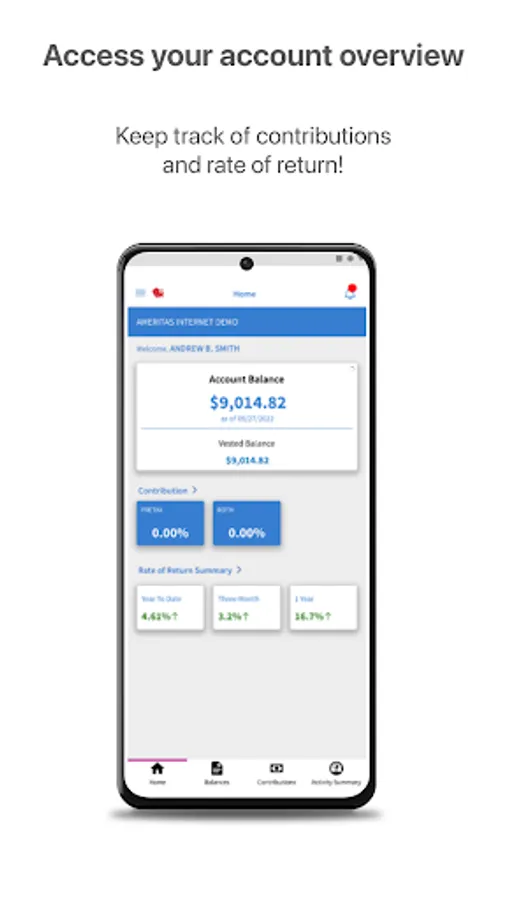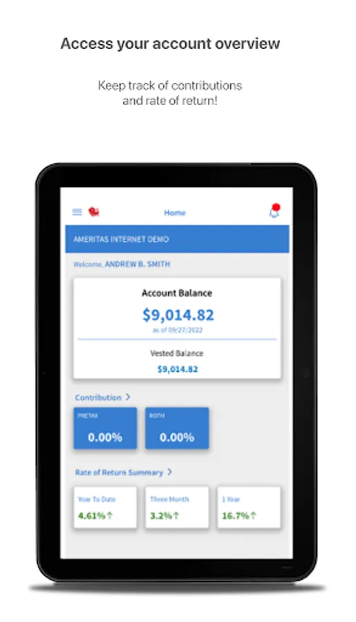 With the Ameritas retirement mobile app you have easy access to key account information including account balance, rate of return, contribution rate, activity summary and more – anytime, anywhere.