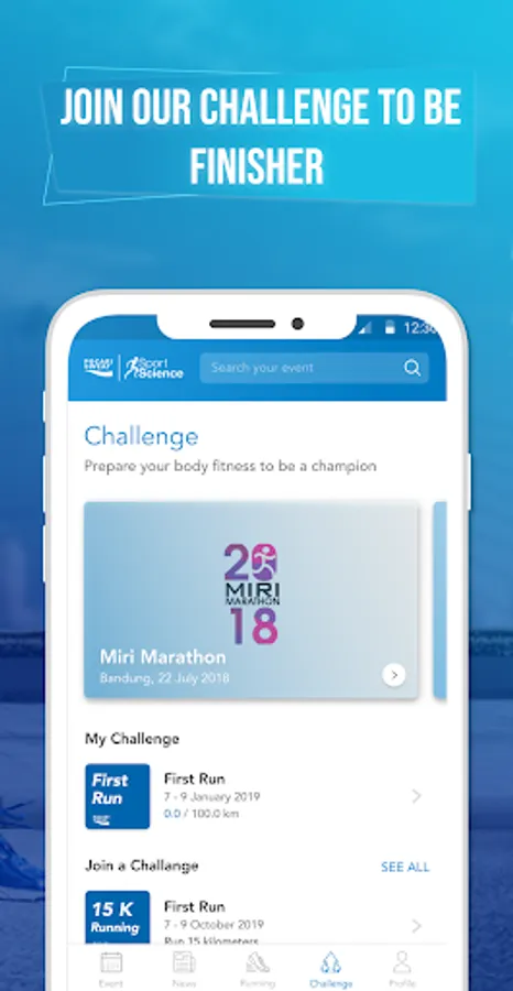 EVENT INFO, NEWSFEED as a portal for news or articles about sports and health, and also interesting CHALLENGE that you can follow in this application.