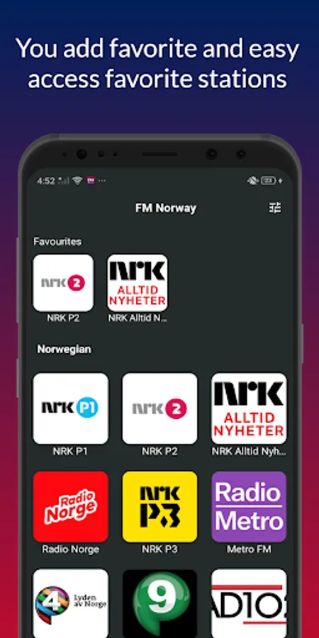 FM Norway brings together live music, news, and FM radio from around the country in one free app. You can quickly enjoy your favorite Norway radios in various categories.
