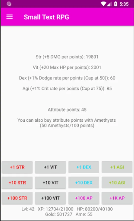 - 4 Attributes to customize your hero (STR/VIT/DEX/AGI)