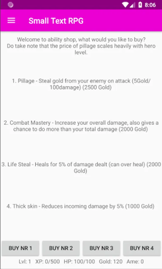 Enjoy a simple text based rpg game where you can fight monsters to earn gold and level up to strengthen your hero.