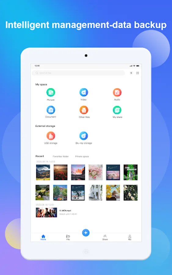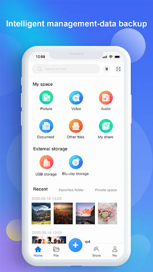 The intelligent family cloud storage server has a large storage space of 1TB/2TB (optional), and can be connected to an external USB storage device, as well as Blu-ray recording, and has a high capacity expansion capability. Blu-ray storage media has the characteristics of high stability, anti-magnetic storm, and long storage period. It is the best choice for long-term data storage and backup. The data is stored locally at the home, not on the cloud, and the encrypted communication method is adopted between the mobile terminal and the home smart cloud storage server, which greatly guarantees the security and privacy of the data. As long as you open the APP, you can view files anytime and anywhere, which is convenient and fast. The built-in AI algorithm can classify pictures according to file types, characters, locations, and scenes to facilitate users to find and manage files.