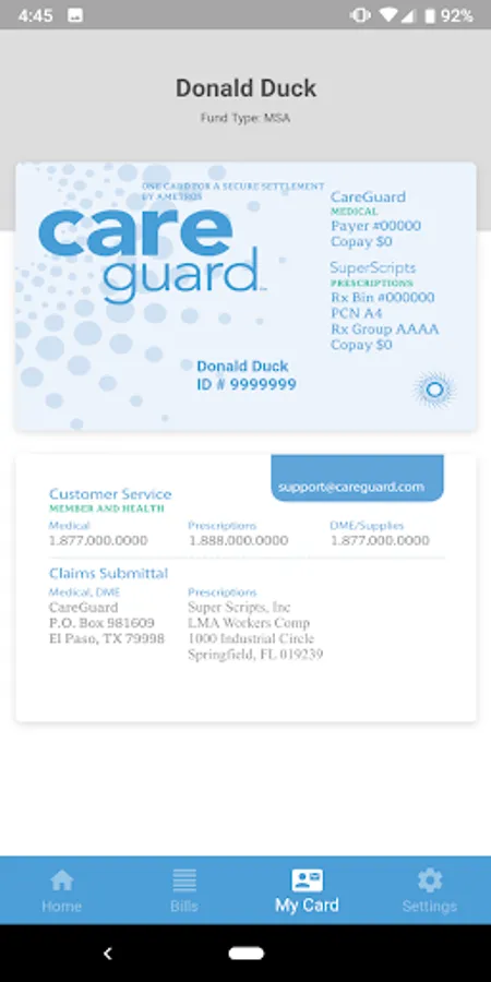 Our secure app makes managing your settlement funds easy whether you are on the go or at home. Real-time access allows you insight into bill details, savings and your overall account balance. Forgot your CareGuard card at home? No problem! Use the digital version of your card at the click of a button.