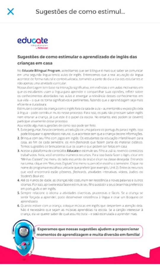 The Educate App facilitates communication and access to resources available in the program Educate Bilingual Program.