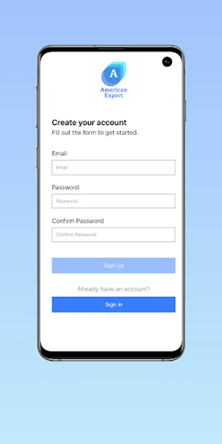 2. Enter email address and password to access the American Export&Import Mobile app.