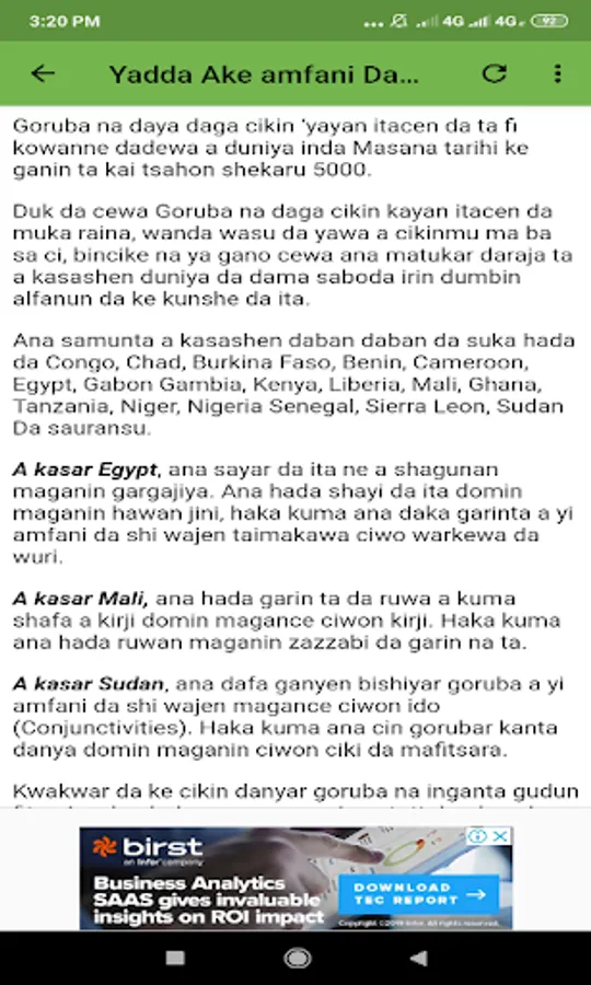 Goruba dai bincike da zurfin tunani masana ya nuna tana da matukar amfani wajen magance wasu cututtuka a jikin dan adam.