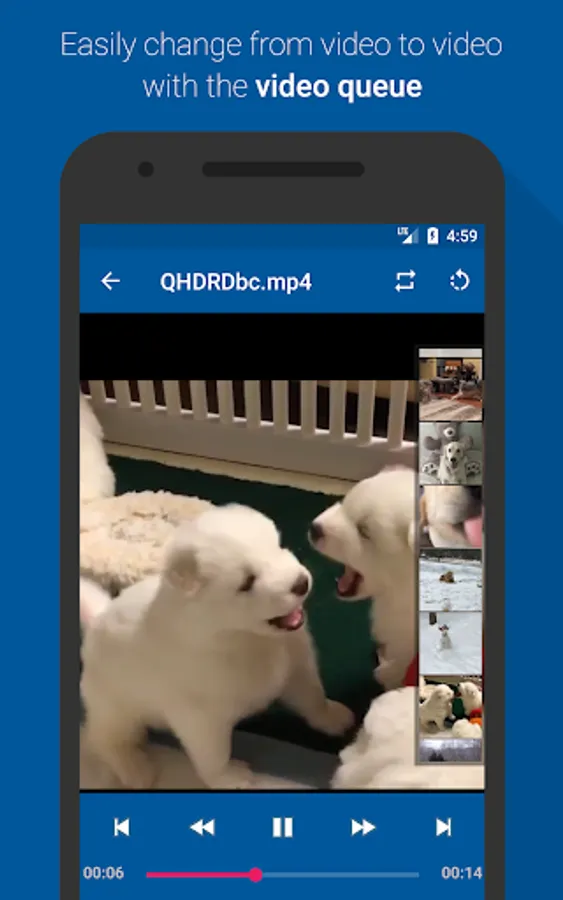 • Gesture control: on top of having skip and previous buttons you can use swiping gestures to go to the next and previous video