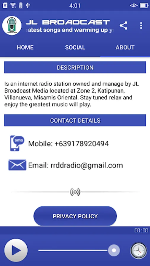 Is an internet radio station owned and manage by JL Broadcast Media located at Zone 2, Katipunan, Villanueva, Misamis Oriental. Stay tuned relax and enjoy the greatest music will play.