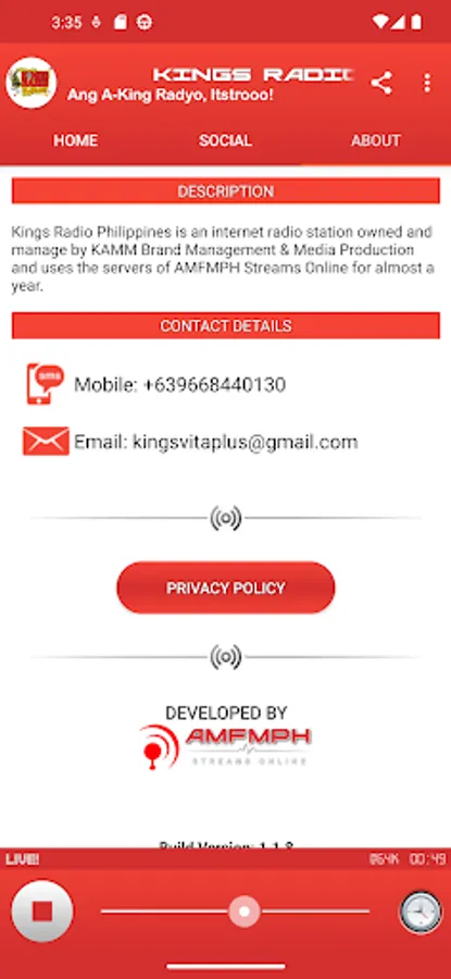 This application is the exclusive, official application for Kings Radio Davao under an agreement between Kings Radio Davao and AMFM Philippines.