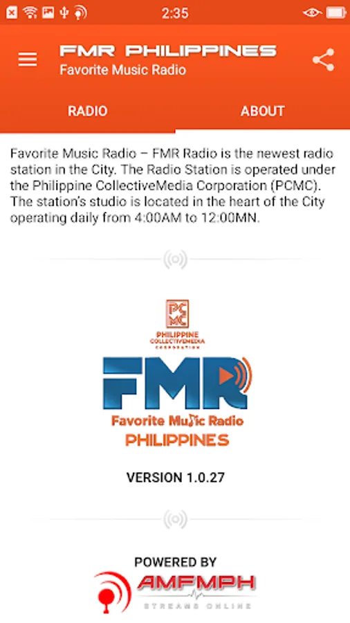 This application is the exclusive, official application for FMR PHILIPPINES under an agreement between FMR PHILIPPINES and AMFM Philippines.