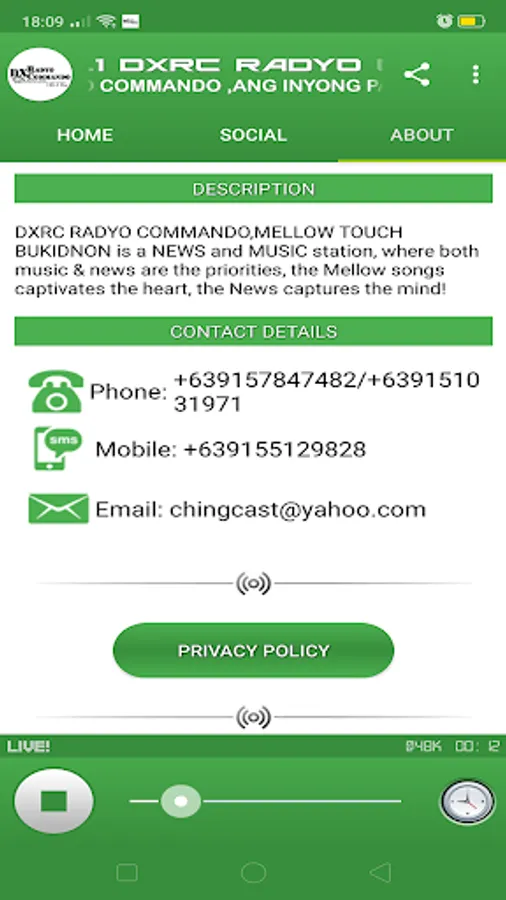 This application is the exclusive, official application for DXRC RADYO COMMANDO under an agreement between DXRC RADYO COMMANDO and AMFM Philippines.