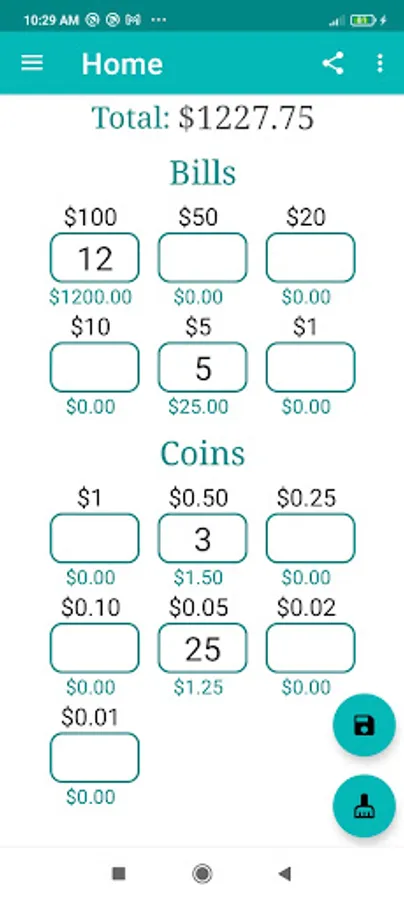Money & Coins Counter is a simple application to count your cash of various denominations of bills and coins. It is a very useful tool in shopping centers, markets, banks and private businesses.