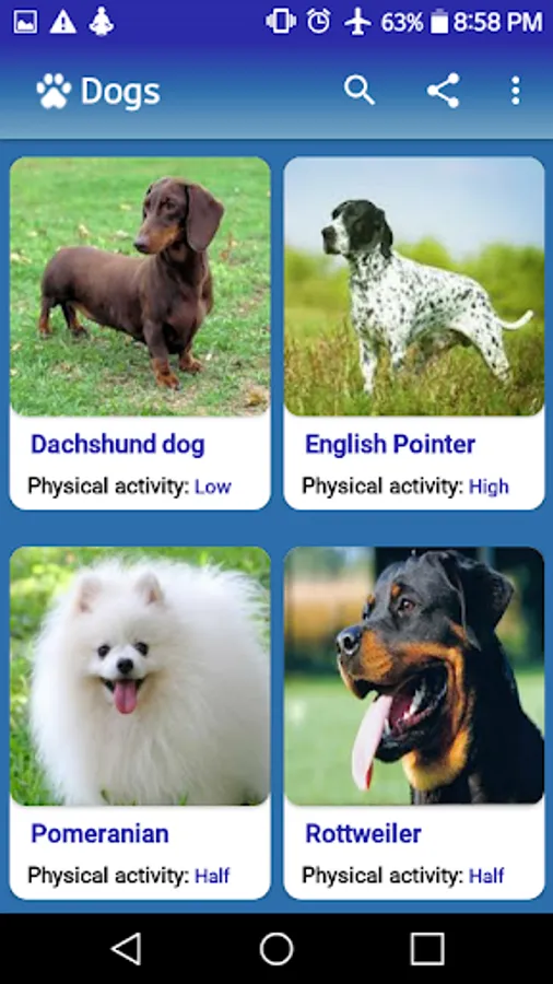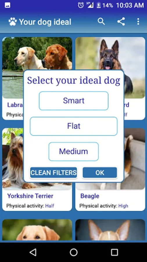 Your Ideal Dog is a free app for those people who love these pets but do not know how to choose the ideal dog. Here you can find out which dog best suits your available time, the conditions of your home and also the people you live with.