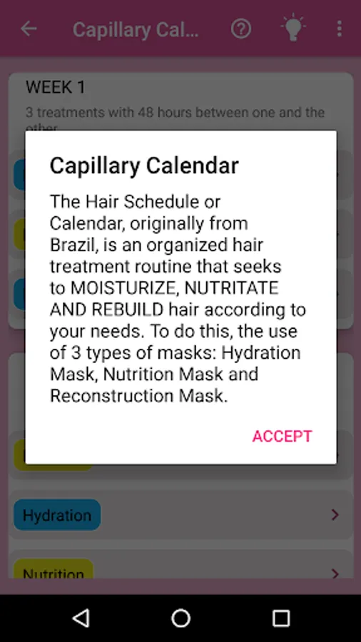 - Capillary Calendar: You will have a routine of hydration, nutrition, and reconstruction masks of your hair according to its porosity