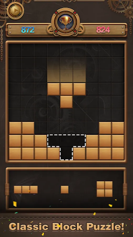 block puzzle is a wooden and punk style block game. Easy to play, but difficult to be a master. More wood blocks crush, more score you will get. Try it and you will love this block puzzle game.