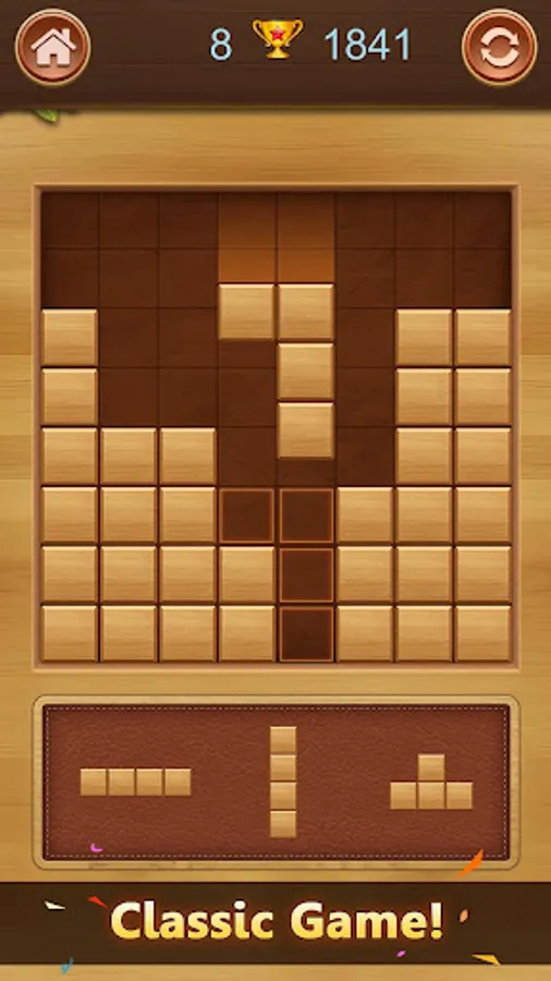 The most addictive and free game, enjoy the design and color of the game.The shapes of different block are waiting for you. Your task is to make a horizontal line or a vertical line. When you make a line, it clears from the screen. The more you clear, the higher score you will get. If there is no room to drag, the game will end.