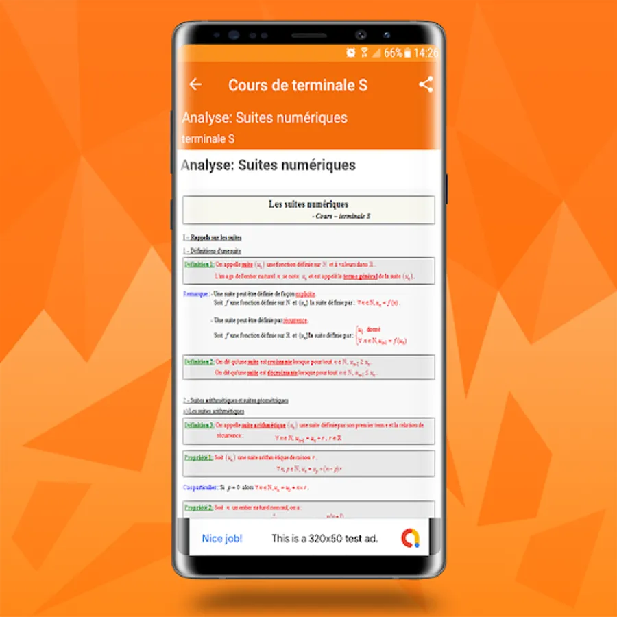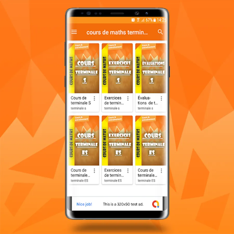This free application is a dynamic Library powered by the best French educational sites specializing in Mathematics courses at the Terminal level.