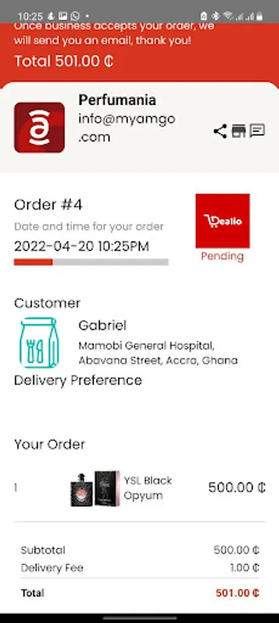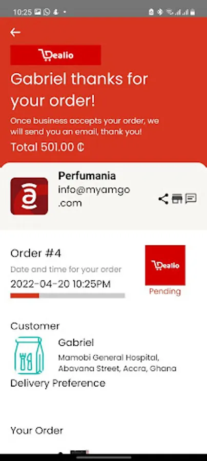 This app is created by Dealio Ghana, and used to place orders, pay, and track delivery, all in one package. You can also keep track of deliveries.