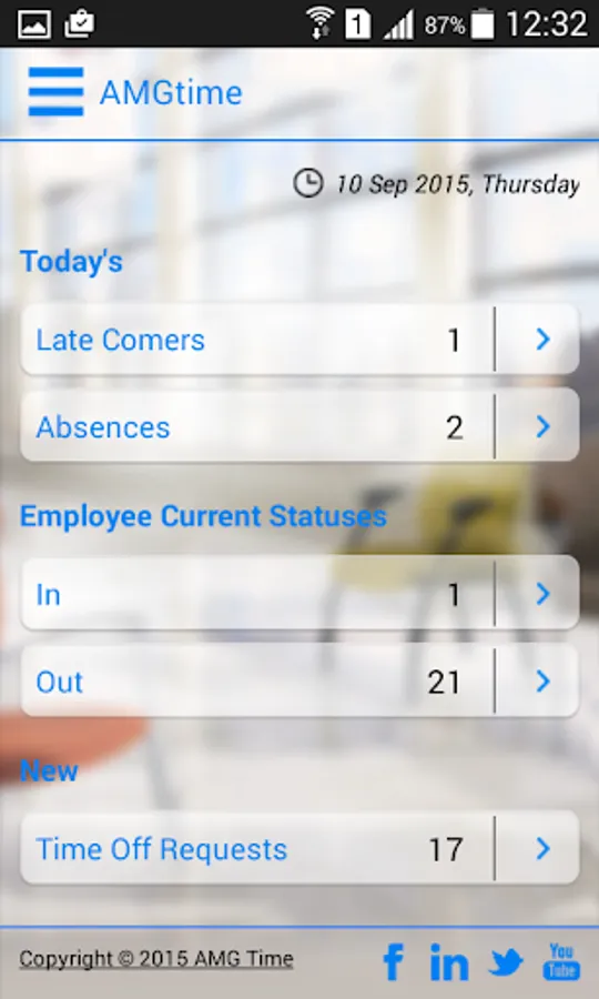 Note: AMGtime mobile application is not intended for standalone use. You should have account in AMG Attendance System online solution to be able to use it.