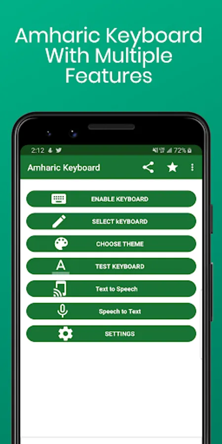 Amharic ( አማርኛ ,Ethiopic) Language and also English text with the most attractive emojis and for correction purpose will give you auto correction suggestion that will help you to write easily and