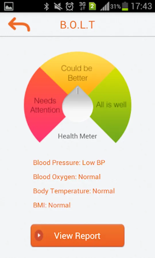 BOLT can also show your health trend with a progressive report about your health readings over a period of time. Every data gets saved in the cloud and you would be able to retrieve them at any point of time. Get a consolidated information in the form of an attractive graph. It’s time to say goodbye to being unhealthy. Keep a tab on your health today & every day.