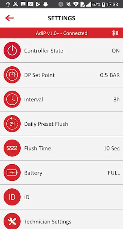 ADI-BLE is an app to interface the ADI-P and ADI-X Controllers, enable to view real time information from the filter system and change configuration, as well as option to export settings and logs