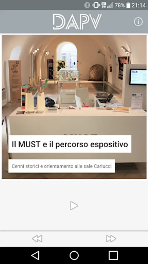 DAPV The app is designed as a useful support to all users of the collection, in the inclusive perspective. In particular, the descriptive guides and indoor system help blind visitors to be more autonomous in the visit and to have access to cultural content.