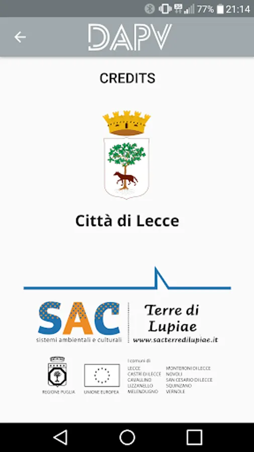 The app DAPV was produced with the assistance of the City of Lecce under the actions of SAC Terre Lupiae.