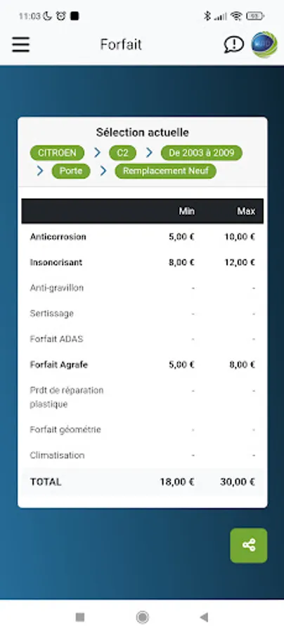 This allows, via a phone or tablet, to quantify, directly in the field, the different packages used in car repairs, depending on the vehicle, its brand, its model and different scenarios.