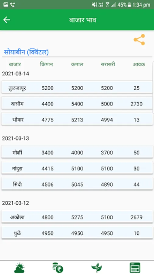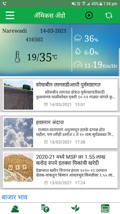Market rates advisory: provide information on the daily rates on crops selected by the member subscribers on a localized, district level, state level, national and international levels. Rates provided will also be commensurate with the rates prevalent on that date based on the area of residence of the member.