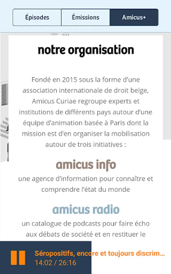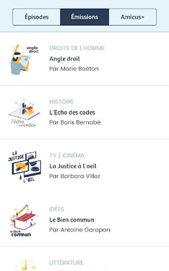 Amicus Radio is a catalog of original podcasts (columns, magazines, reports, interviews and documentaries). Driven by the talent and curiosity of a team of animators of diverse horizons - magistrates, professors, journalists, lawyers - our productions apply to make the right audible and accessible, beyond its disciplinary, cultural or geographical borders. . History, news, literature, evening classes, reports, documentaries, are all topics and formats that we browse through podcasts, through the prism of law and justice.