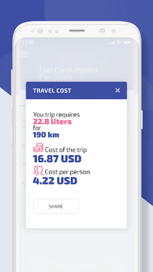 In this app, you have to enter such information as average fuel consumption, the distance you are planning to travel and the price of fuel. The calculator will give you total cost of the fuel required for the whole journey.