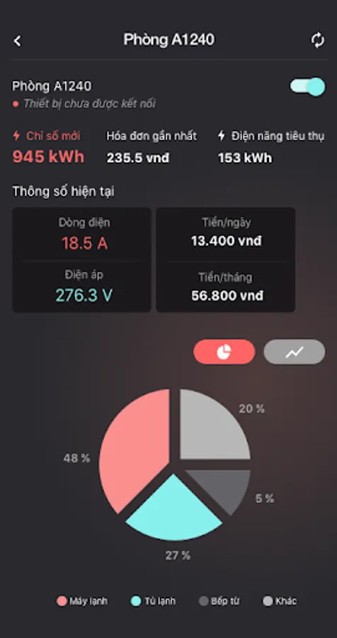 Analysis and comparison of electrical consumption of each device in the room (AI technology application)