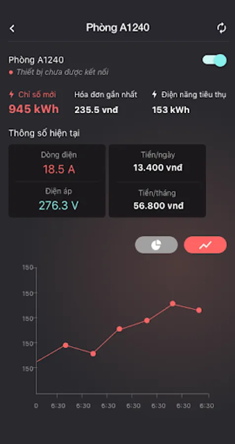 The voltage and current information is displayed as a chart to look up the power consumption of the device over a certain period of time.
