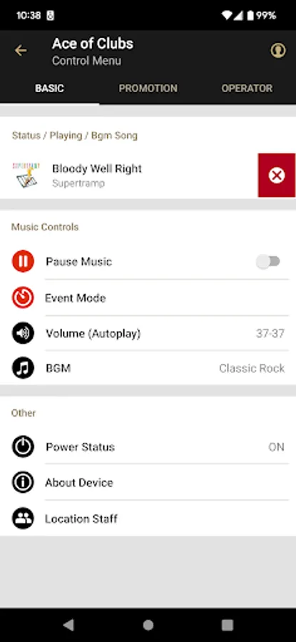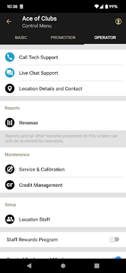 Operator & Location Controls: (Note: Operators must give location staff permissions to access any or all of the below features)