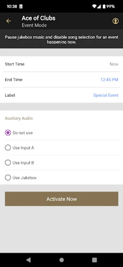 - Event Mode – Temporarily halt music playback and prevent patrons from making paid selections at the jukebox or via the AMI Music app for a set amount of time.