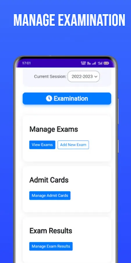 -Create and Manage Admit Cards.