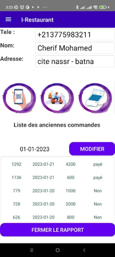 1. تطبيق للسارفور (النادل) متصل مباشرة ببرنامج المطاعم الشهير